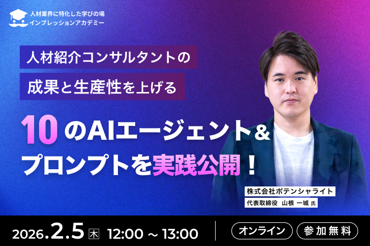 前半では、人材紹介会社で「まずここから使うべき」基本かつ汎用性の高いAI活用法を解説。後半では、これまでウェビナーでは一切公開してこなかった、山根様独自の少しトリッキーで実践的なAIエージェント・プロンプト(5つ)を特別にお伝えします。