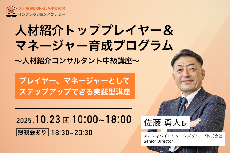 昨年開講した人材紹介コンサルタント向け講座シリーズ、入門編に続き今回あらたに中級編を開講致します。