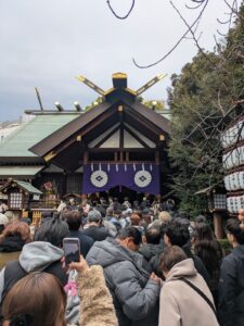 今年も早めに参拝したので、大混雑に巻き込まれずスムーズに参拝することができましたが、帰りには入口で待ち列が前の道路を挟んでずらっとできていました。